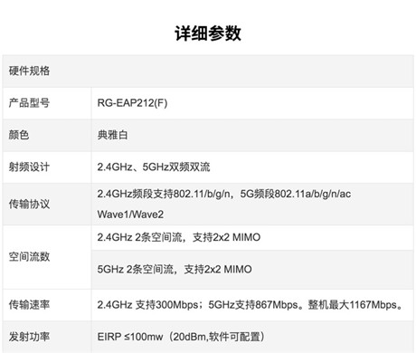 銳捷易網絡二代RG-EAP212(F)/(G)1200M雙頻無線吸頂放裝AP