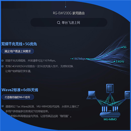銳捷RG-1200G無線路由器穿墻王1200M大功率雙頻高速5G