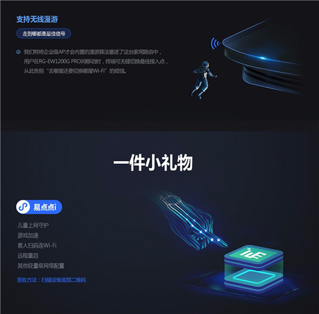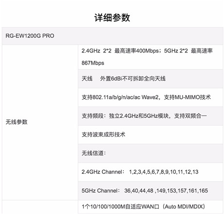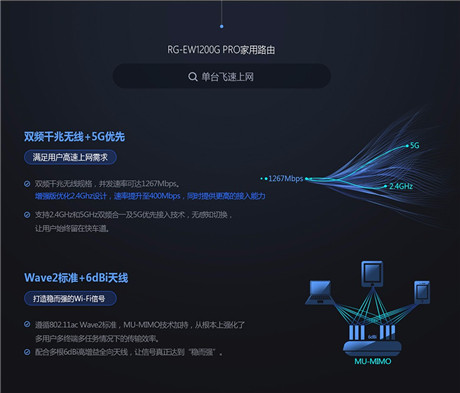 銳捷睿易路由器全千兆雙頻家用無線1300M千兆端口 RG-EW1200G PRO