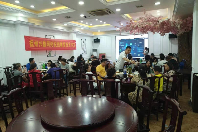 漢天的黃經理開始為大家講解銳捷產品的新理念,各位同事都在樂不思蜀的討論著
