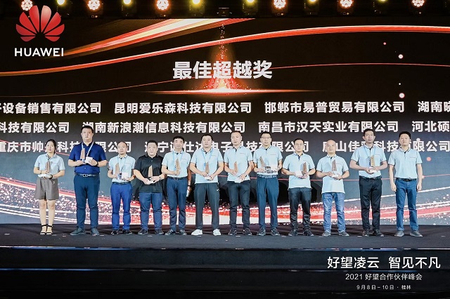 合作伙伴擔任渠道賦能、反饋產品及解決方案優化建議等。接下來在會上被評為最佳超越獎的合作伙伴上臺領獎!大家都以最熱烈的掌聲祝賀他們!華為也將大力扶持此類能力型標桿伙伴,為其提供眾測樣機優先權、送課上門、投標共享中心基礎服務等優質權益,帶領廣大渠道快速轉型,服務全國、互助共贏!