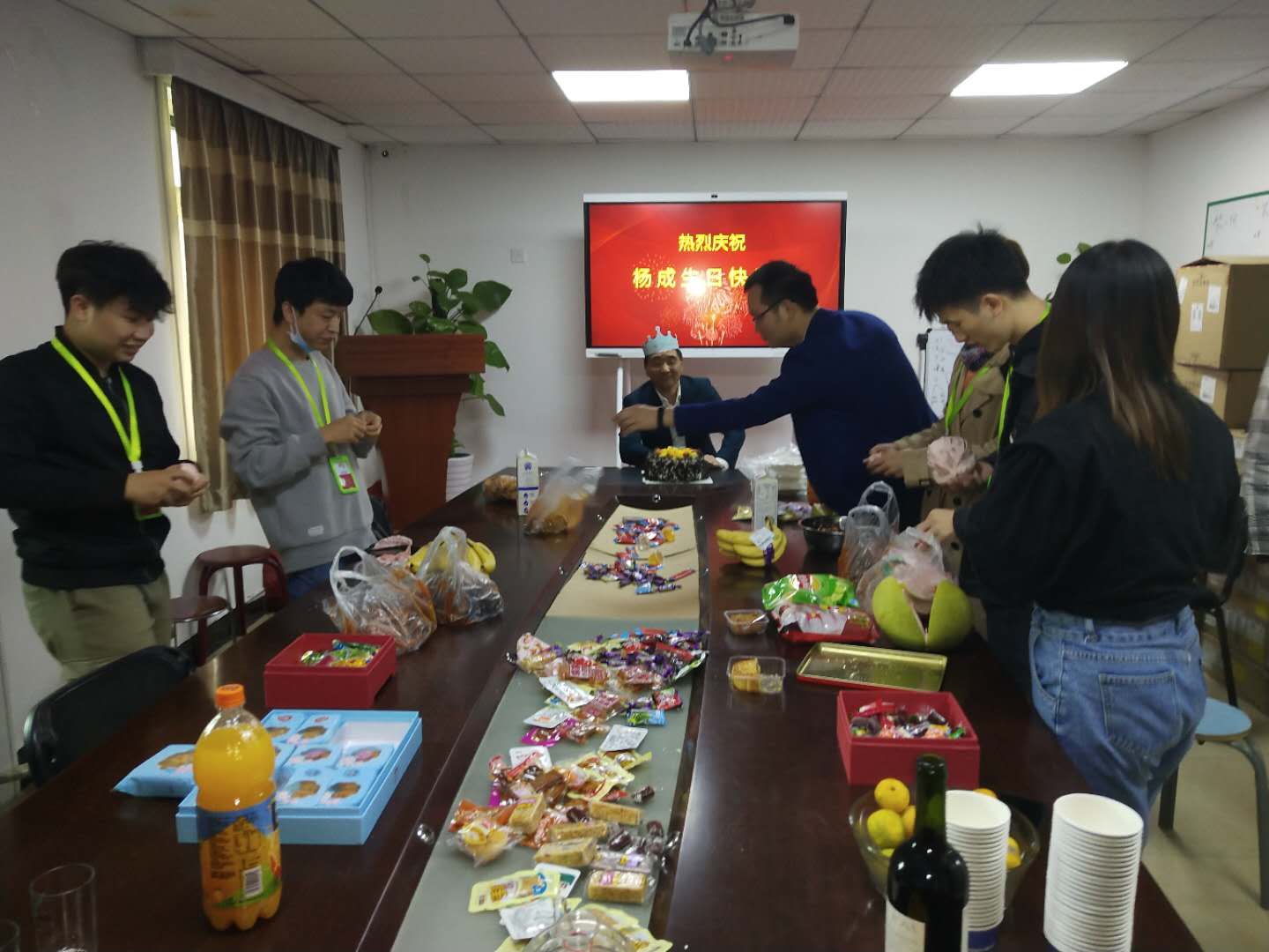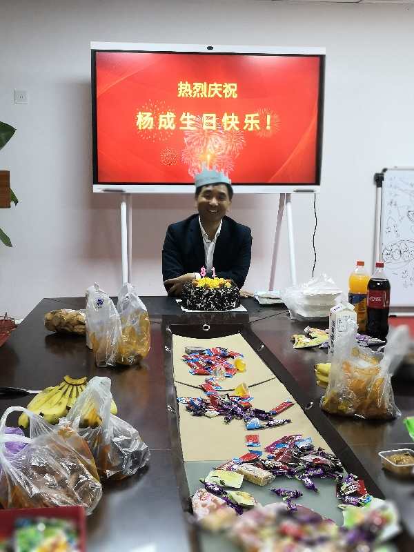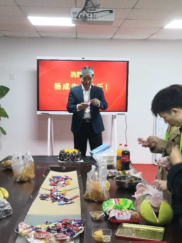 所有的同事們為楊總唱生日歌,祝愿楊總年年18,永遠18!