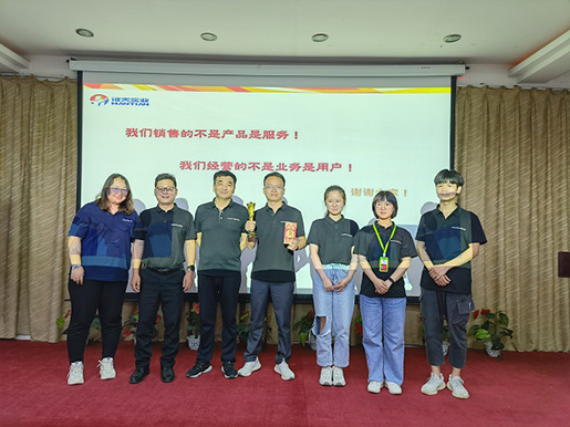 課程的最后,積分最高的小組獲得了榮譽獎杯,小組所有成員上臺與楊總合影留念!